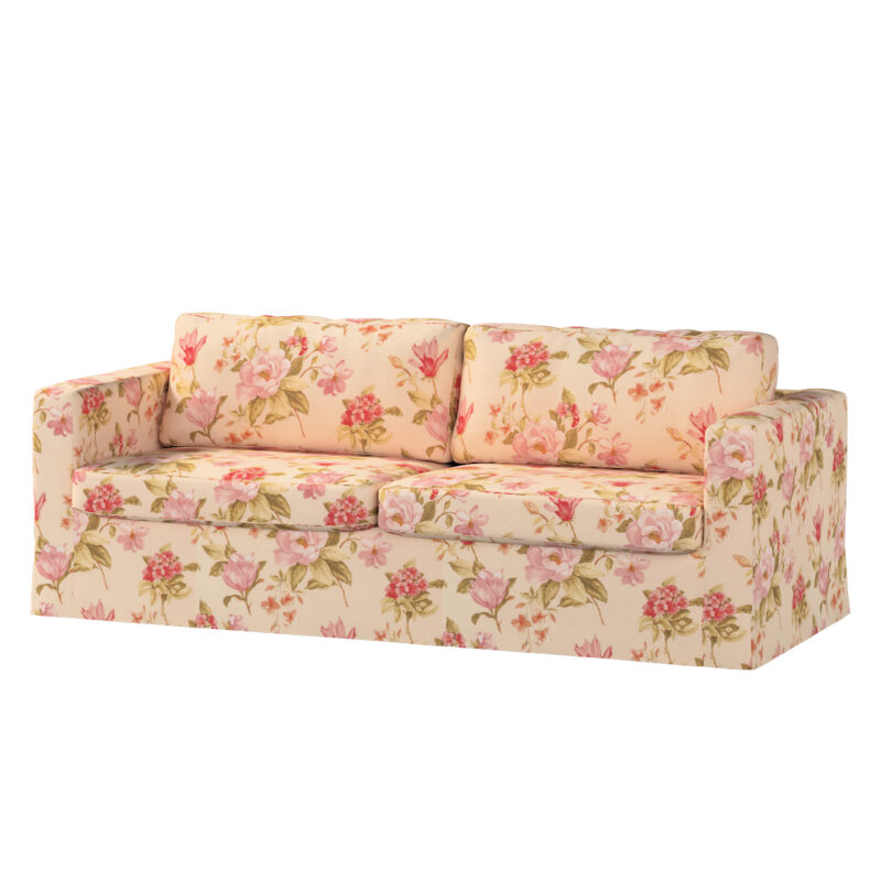 Poťah na sedačku Karlstad (nerozkladáci, 3-miestný, dlhý), výrazný vzor ružovozelené kvety na ľanovom podklade , 224 x 89 x 64 cm, Londres, 143-87