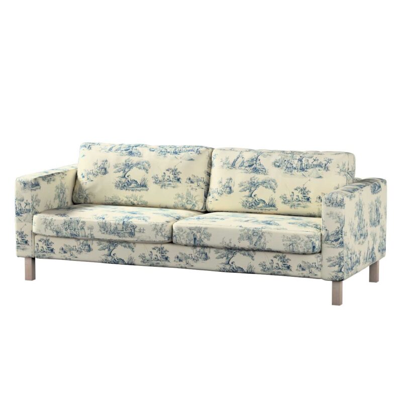 Poťah na sedačku Karlstad (rozkladací, 3-miestny, krátky), modrý vzor na svetlobéžovom podklade, 224 x 89 x 64 cm, Avinon, 132-66