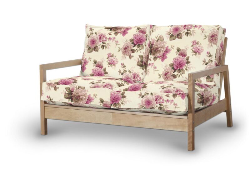 Poťah na sedačku Lillberg (nerozkladacia, pre 2 osoby), ružovo-béžové ruže na krémovom podklade, Poťah na sedačku Lillberg – pre 2 osoby, Londres, 141-07