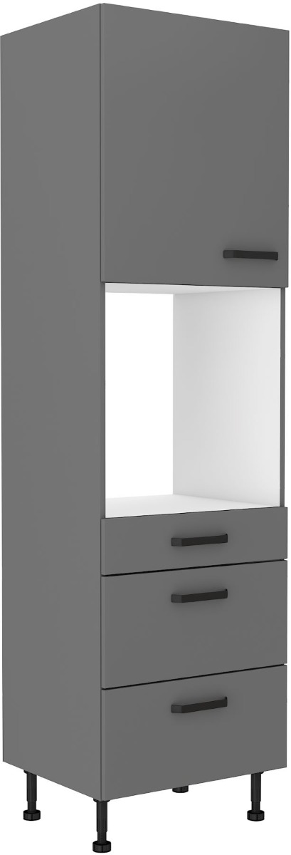 Štýlová kuchynská linka DASEN v žiadanom farebnom prevedení antracit vynikne v každom modernom interiéri. Je vyrobená z kvalitnej 16 mm hrubej LTD dosky, čierne kovové úchyty príjemne dopĺňajú jej moderný dizajn. Skrinky disponujú ABS hranami a majú funkciu tichého dovierania, nožičky sú nastaviteľné.Vysoká potravinová skrinka 60DPS-215-3S1F má rozmery (ŠxVxH): 60 x 215 x 57 cm.Vďaka bohatej ponuke kuchynských skriniek z kolekcie DASEN si vyskladáte štýlovú kuchyňu podľa svojich vlastných predstáv a potrieb.Dodávame v demonte.