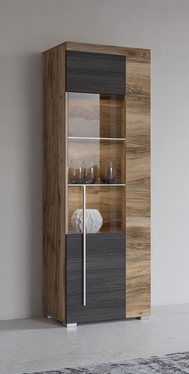 POUND vysoká vitrína pravá, orech Satin/touchwood