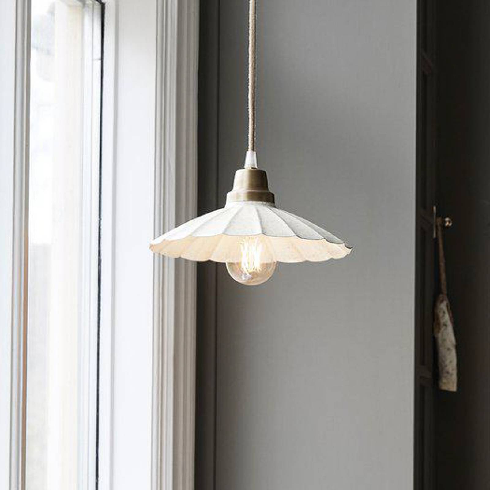 Závesné svietidlo Ester v retro dizajne – vybavené zástrčkovým káblom Kruhové tienidlo na lampu závesného svietidla Ester z železa je otvorené v spodnej časti a má farebne smaltovanú povrchovú úpravu. V kombinácii s mosadzným detailom nad tienidlom vzniká svietidlo s príjemným vintage šarmom. Napájanie je priamo zo zásuvky, závesné svietidlo Ester je vybavené káblom s konektorom a upevňovacím háčikom.