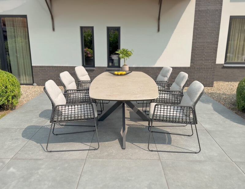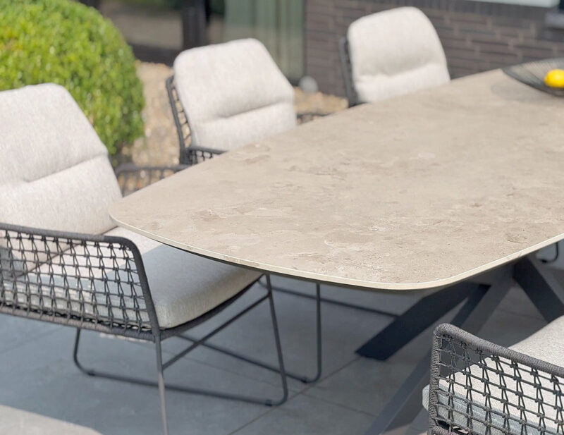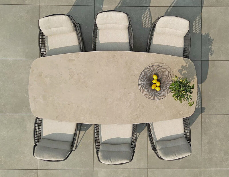 Elegantný jedálenský stôl Prado s odolnou keramickou doskou a stabilnou hliníkovou konštrukciou je ideálnou voľbou pre vašu terasu či záhradu.