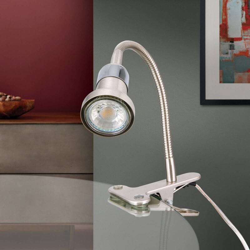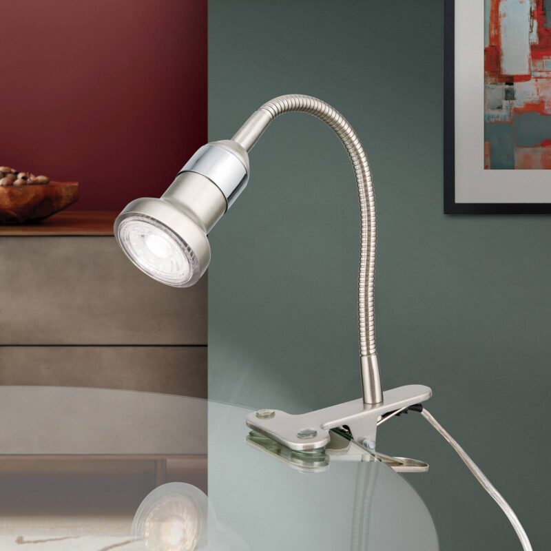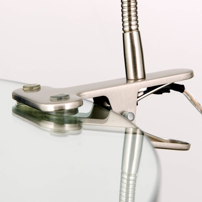 Zaujímavá štipcová lampa COLANA s flexibilným ramenom a otočným reflektorom Vďaka kovovej svorke sa dá COLANA pripevniť k rôznym druhom nábytku a individuálne nastaviť pomocou flexibilného ramena.