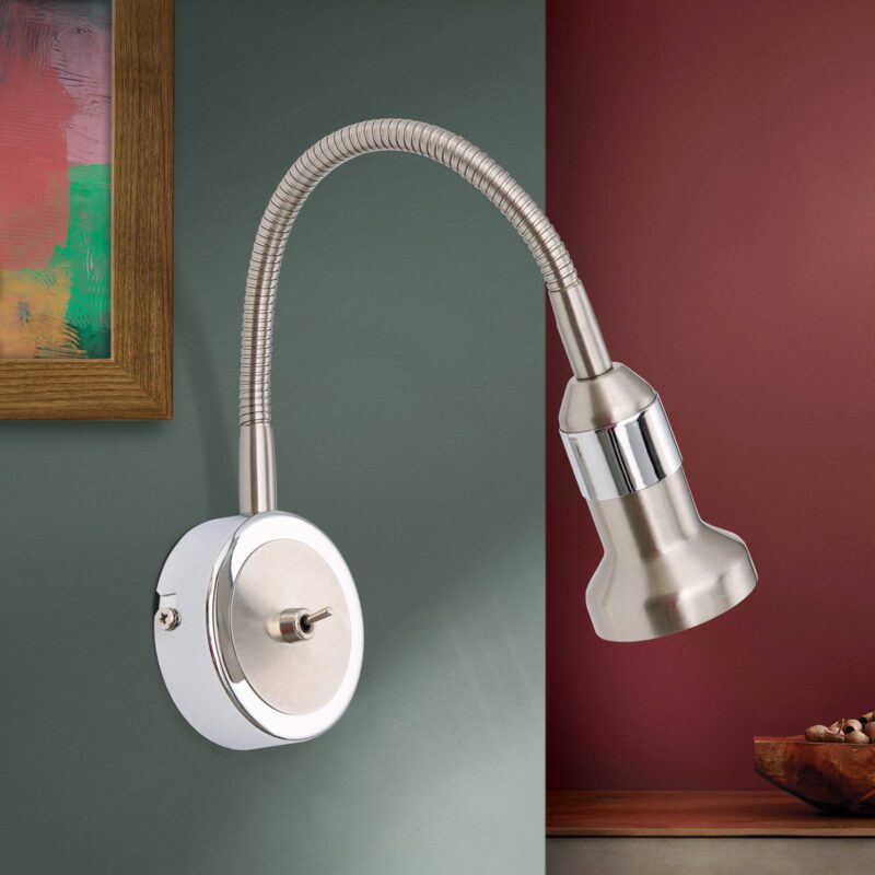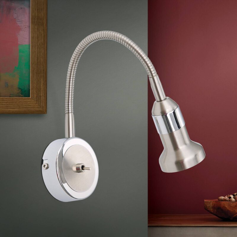 Zaujímavé nástenné svietidlo COLANA s flexibilným ramenom a otočným reflektorom na cielené a dobré osvetlenie Nástenné svietidlo COLANA je vybavené prepínačom a poskytuje optimálne osvetlenie na želanie.