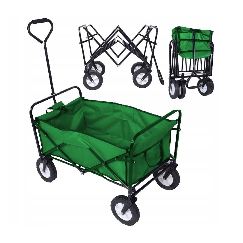 Veľkou výhodou tohto typu záhradného vozíka je možnosť zloženia celého vozíka na malý rozmer. To zaručuje vysoký komfort používania. Jedným pohybom ruky záhradný vozík zložíme, vložíme do kufra alebo odložíme na malý priestor. Výrobok je vyrobený z kvalitných materiálov, vďaka čomu odolá zaťaženiu až 90 kg. Má pevnú kovovú konštrukciu a opláštenie vyrobené z odolného a vodeodolného materiálu (600D polyester). Pohodlná rukoväť umožňuje ľahkú prepravu vozíka, aj naplneného nákladom. Pevné kolesá sa otáčajú o 360⁰, čo zaisťuje hladkú jazdu aj pri veľkom náklade.