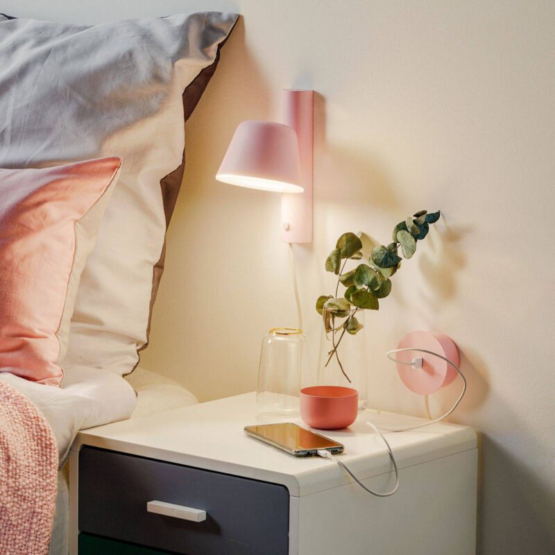 Nástenné svietidlo LED Bima W1 s variabilným pripojením USB Nástenné svietidlo LED Bima W1 v ružovej farbe je vybavené praktickým pripojením USB. Lampa z kovu je preto ideálna na montáž na stenu nad posteľ alebo vedľa nej ako náhrada nočnej lampy. Obzvlášť praktické je flexibilné upevnenie prípojky USB, pretože je k nástennej lampe pripojená káblom dlhým 100 cm, takže ju možno namontovať samostatne na stenu vo výhodnej polohe. V tienidle nástennej lampy je umiestnený difúzor, ktorý zabezpečuje rovnomerný svetelný lúč. Taliansky produktový dizajnér Filippo Protasoni navrhol sériu svietidiel Bima pre výrobcu svietidiel Prandina. Spoločnosť, ktorá má tiež sídlo v Taliansku, vyrába vysokokvalitné svietidlá, ktoré sú väčšinou vybavené tienidlami z fúkaného skla; séria svietidiel Bima s kovovým tienidlom je v tomto prípade výnimkou.