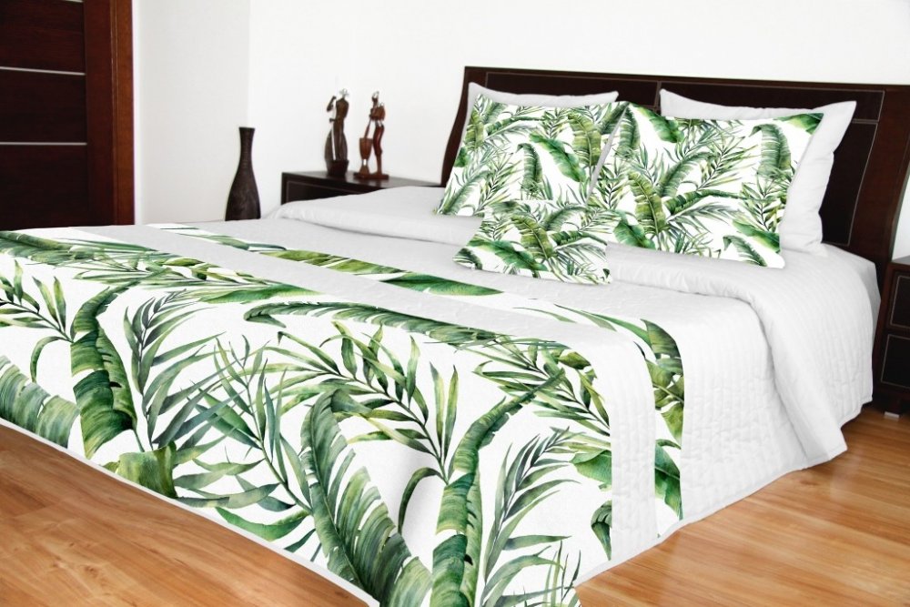 Prehoz na dvojposteľ biely s prírodným vzorom Šírka: 240 cm | Dĺžka: 260 cm Šírka: 240 cm | Dĺžka: 260 cm