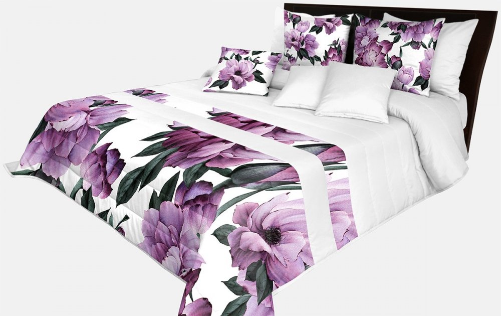 Prehoz na posteľ v krásnej bielej farbe s potlačou dokonalých fialových kvetov Šírka: 200 cm | Dĺžka: 220 cm Šírka: 200 cm | Dĺžka: 220 cm