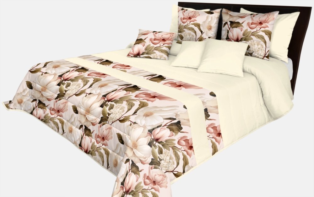 Prehoz na posteľ v krémovej farbe s jemným vzorom pivónii Šírka: 170 cm | Dĺžka: 210 cm