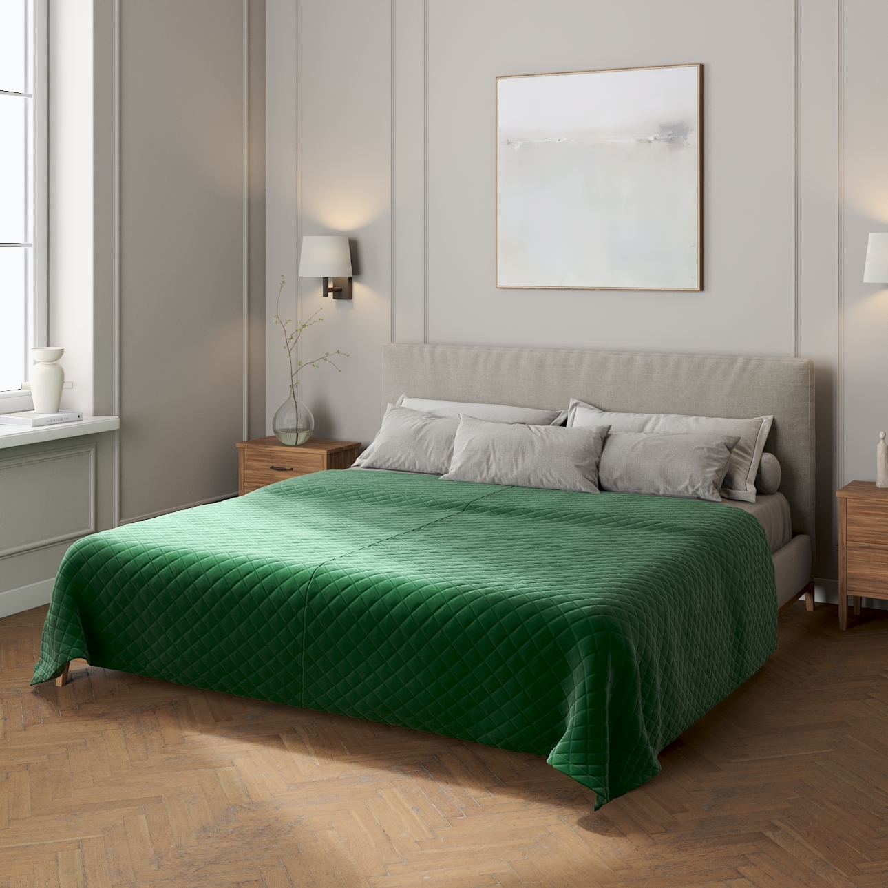 Prehoz prešívaný do kosoštvorcov, Grøn, Velvet, 704-13