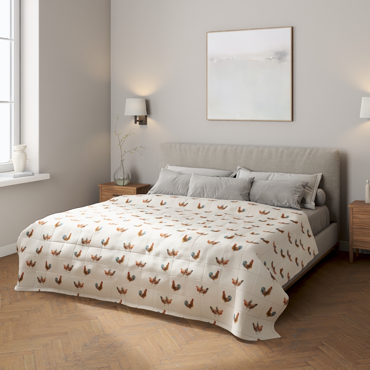 Prehoz prešívaný do štvorcov, hnedé kohúty na krémovom podklade, Flowers, 141-80