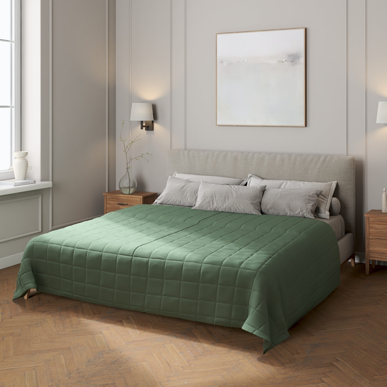 Prehoz prešívaný do štvorcov, matná zelená, Linen, 159-08