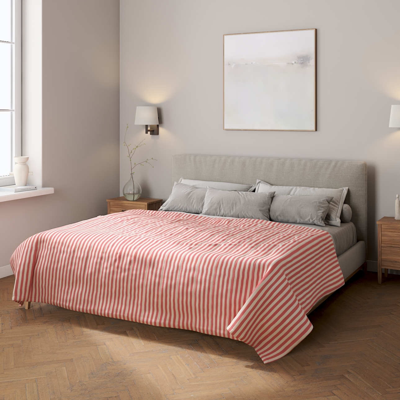 Prehoz s pozdĺžným prešívaním, červeno-biele prúžky, Quadro, 136-17