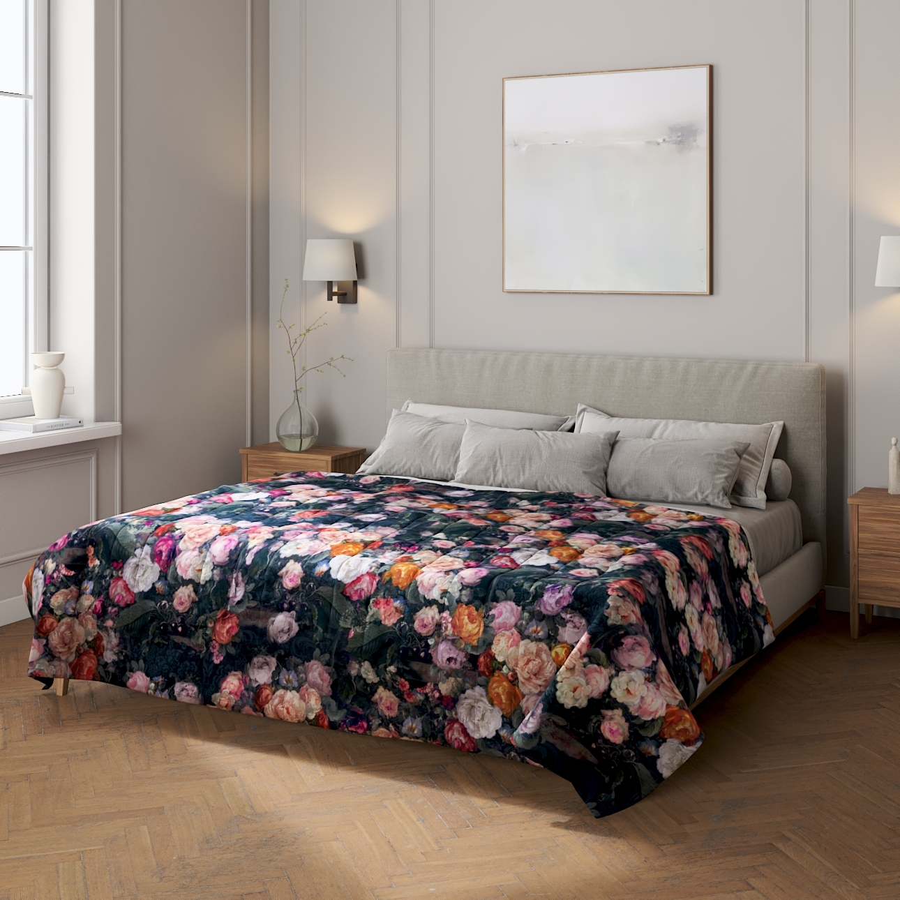 Pridajte prvú recenziu pre “Prehoz s pozdĺžným prešívaním, farebné kvety na tmavom pozadí, Gardenia, 161-02”