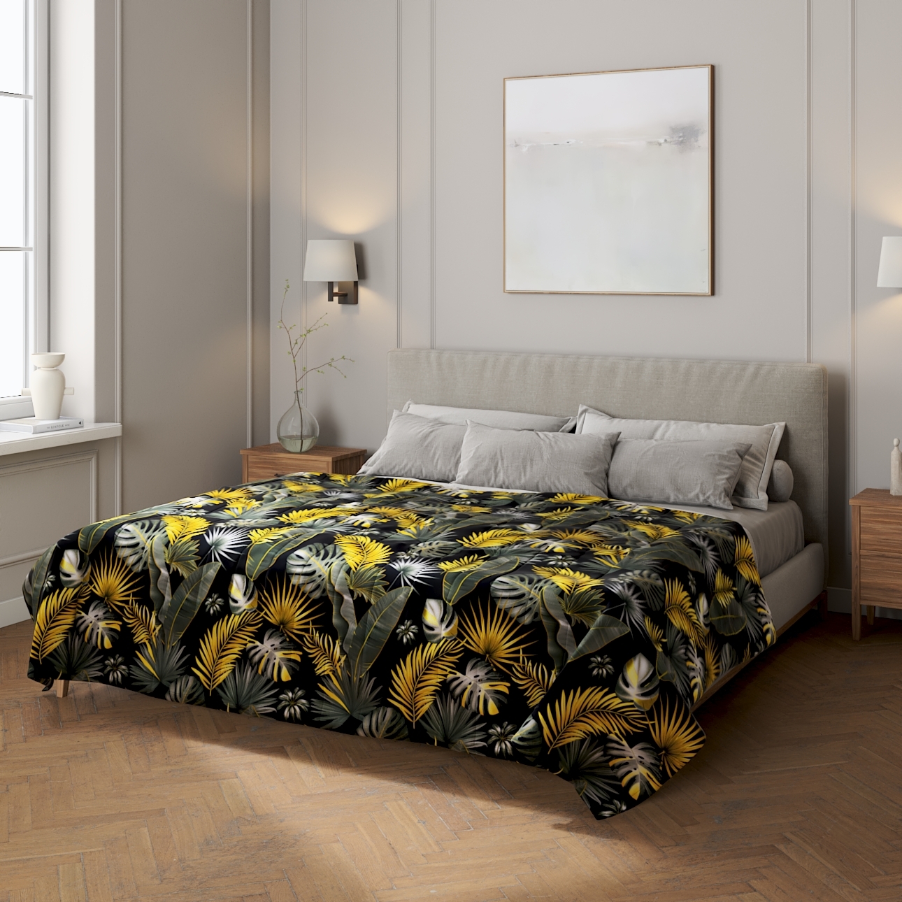 Prehoz s pozdĺžným prešívaním, grå-guld blade på en sort baggrund, Velvet, 185-81