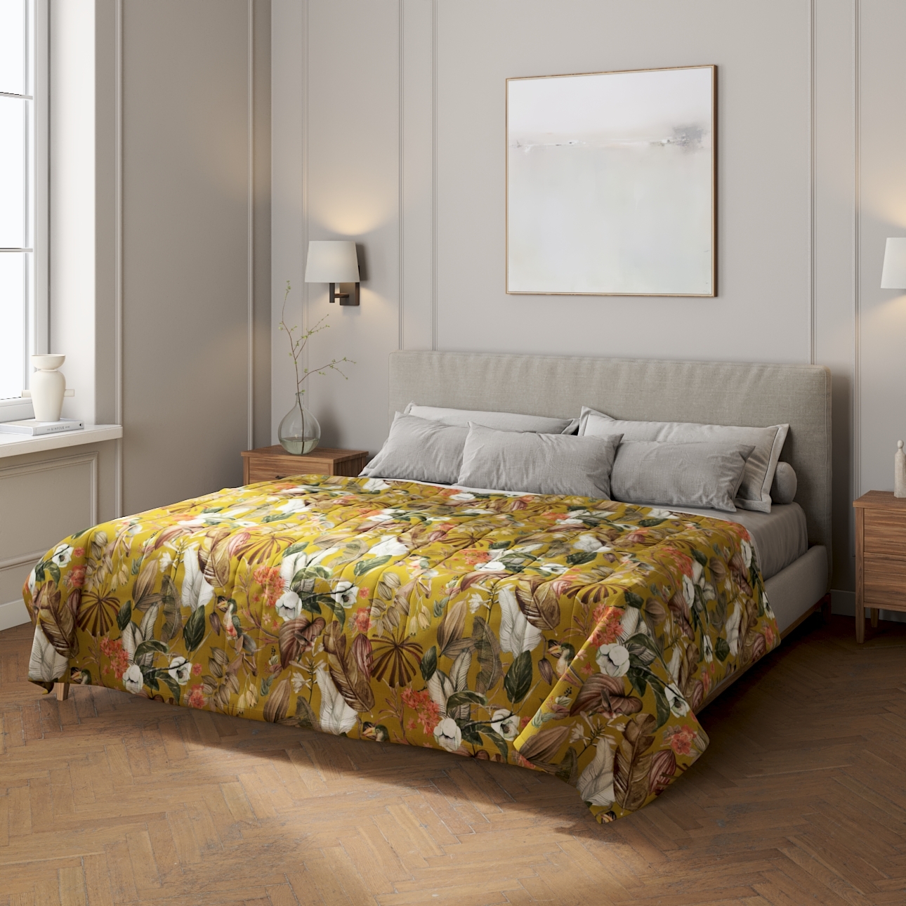 Prehoz s pozdĺžným prešívaním, kvety na horčicovom podklade, Abigail, 143-09