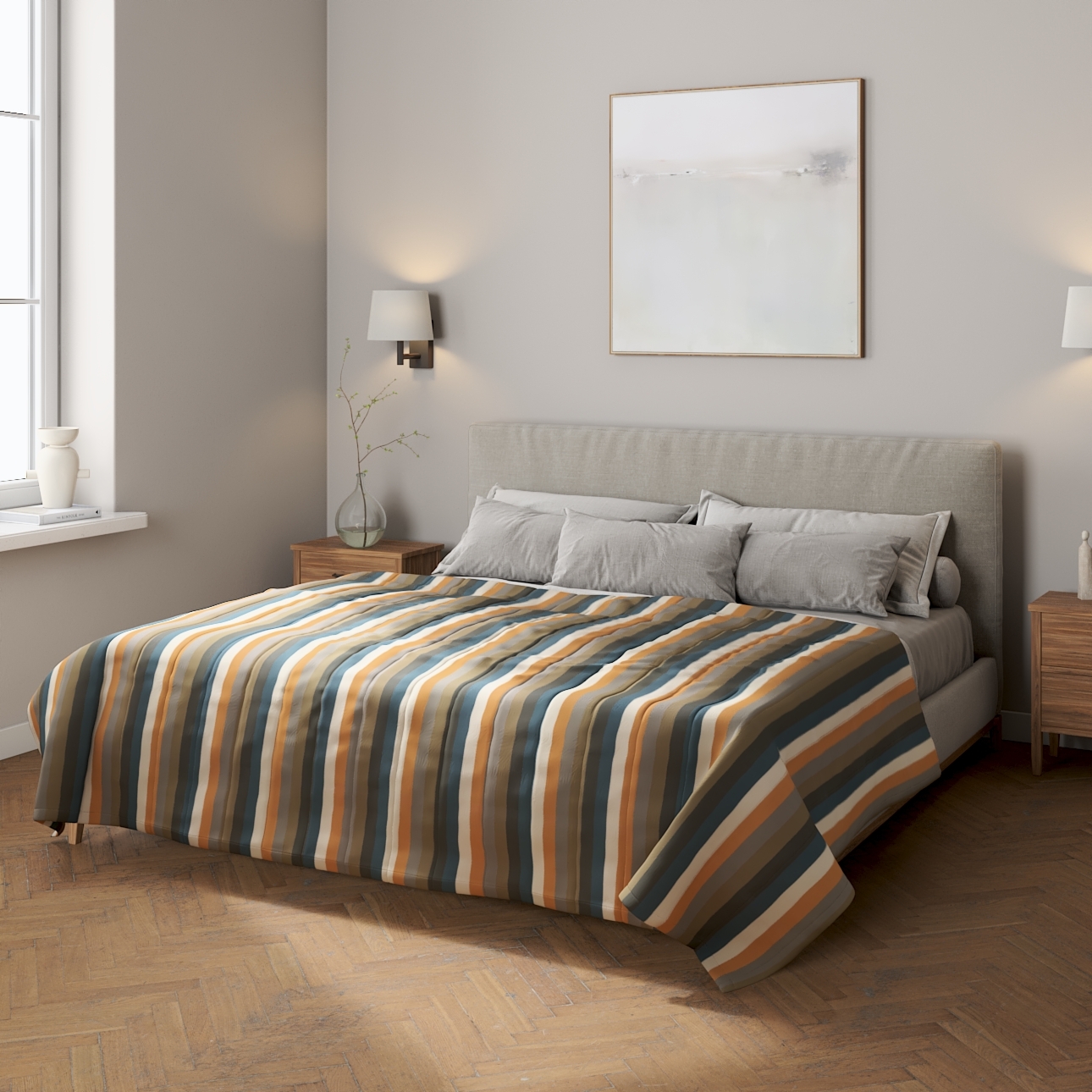 Dekoračný prehoz na posteľ na prikrytie postele je jednostranný.Prehoz na posteľ prešívaný pozdĺžne – pásmi po 10cm.Vnútro prehozu vypĺňa duté vlákno.Vpravo máte zaškrtnuté ušitie na mieru a po zadaní rozmerov Vám systém automaticky vyráta cenu prehozu.Výberom vhodnej tkaniny, Vaša spálňa dostane iný rozmer.K prehozu si môžete z rovnakej tkaniny doobjednať aj dekoračné vankúše.Upozornenie: Rozmery textilných výrobkov majú toleranciu +/-2 cm na dĺžke aj na šírkev závislosti od použitého materiálu.