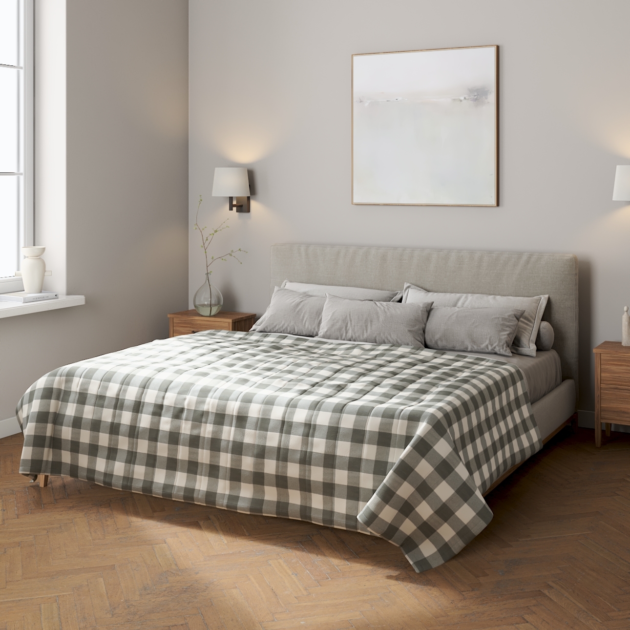 Prehoz s pozdĺžným prešívaním, sivo-biele veľké káro, Quadro, 136-13