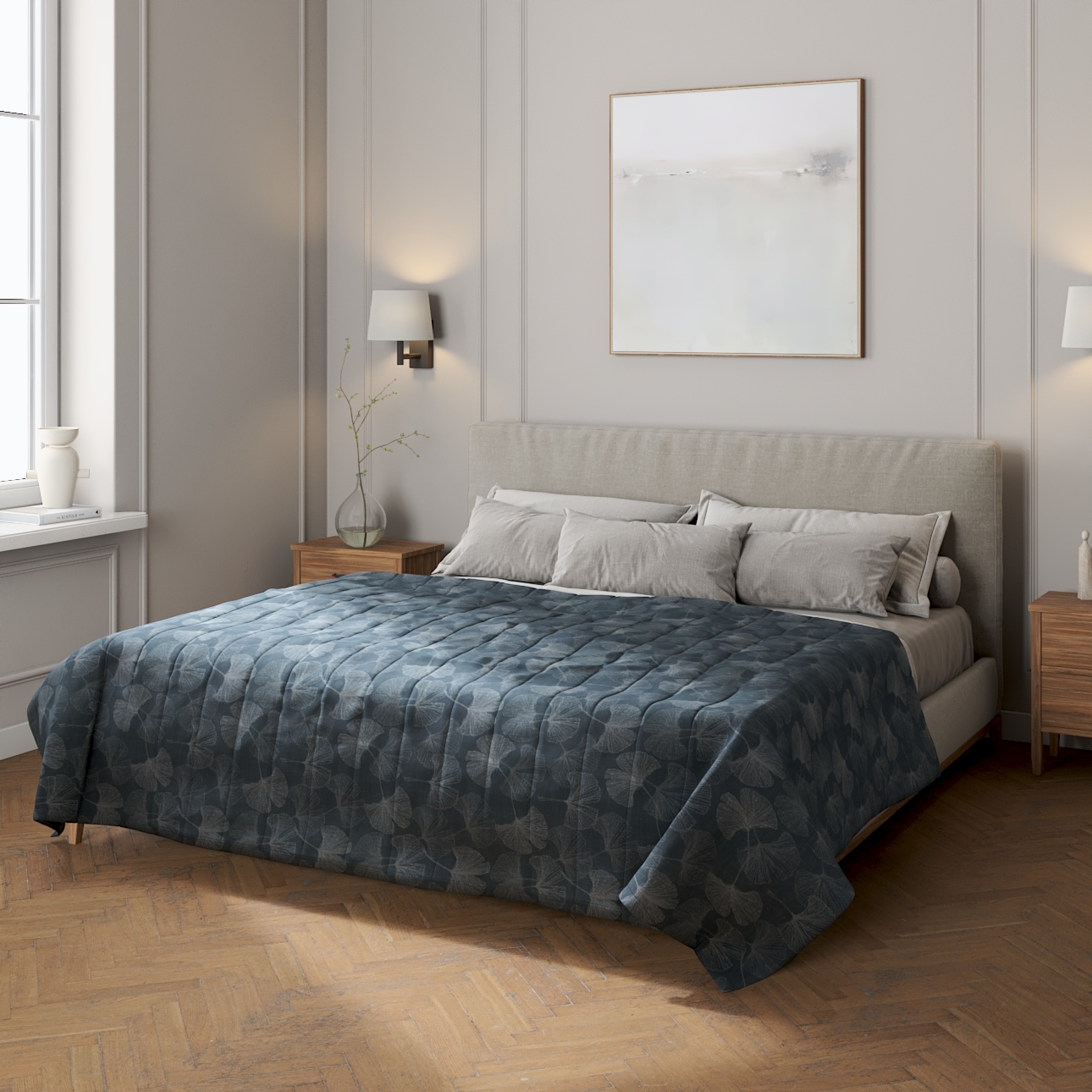 Prehoz s pozdĺžným prešívaním, strieborné listy ginka na grafitovom podklade, Flowers, 143-52