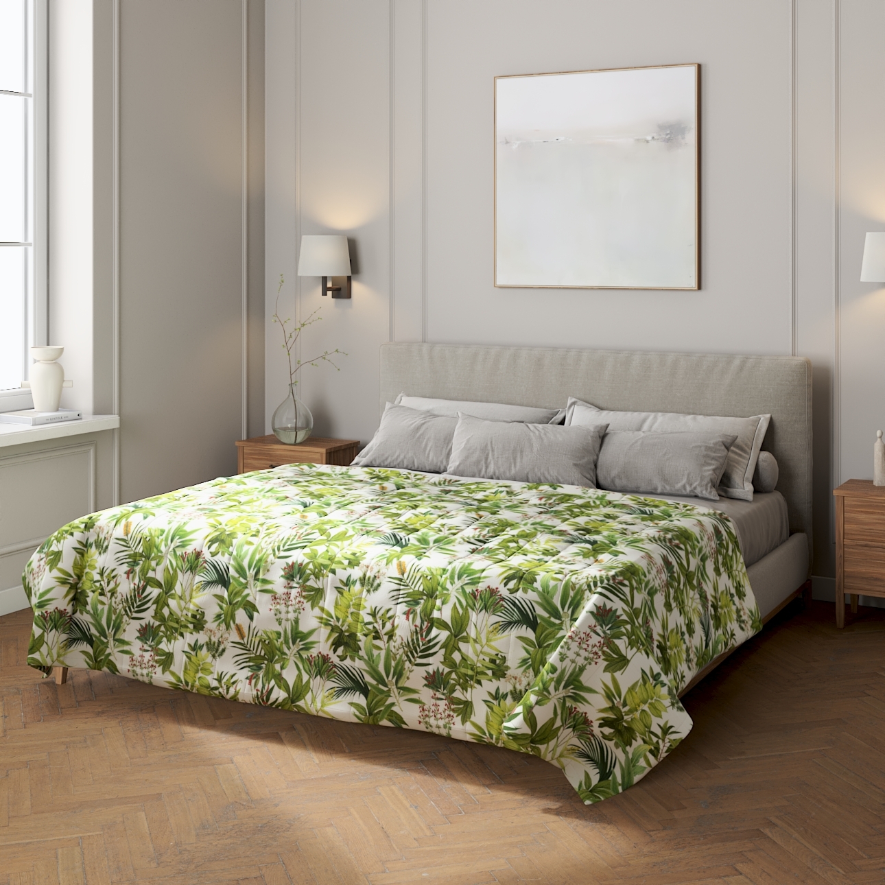 Prehoz s pozdĺžným prešívaním, zeleno – červené rastliny na bielom podklade, Tropical Island, 143-69