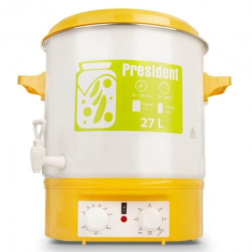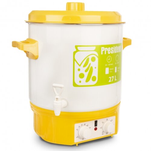 Pre všetkých milovníkov zavařovaných dobrôt ponúkame tento šikovný hrniec, ktorý je určený nielen pre zaváranie a sterilizáciu ovocia / zeleniny, ale rovnako aj pre prípravu teplých nápojov, polievok či gulášov. Nádoba má kvalitné glazúrovaný povrch a disponuje veľkým objemom 27 l, umožňujúcim spracovanie veľkého množstva surovín. Hrniec sa môže pochváliť kapacitou až 11 zaváracích pohárov o objeme 0,75 l. Výhodou je plynule nastaviteľný termostat od 50 – 100 ° C a plynulo nastaviteľný časovač od 20 – 120 minút.