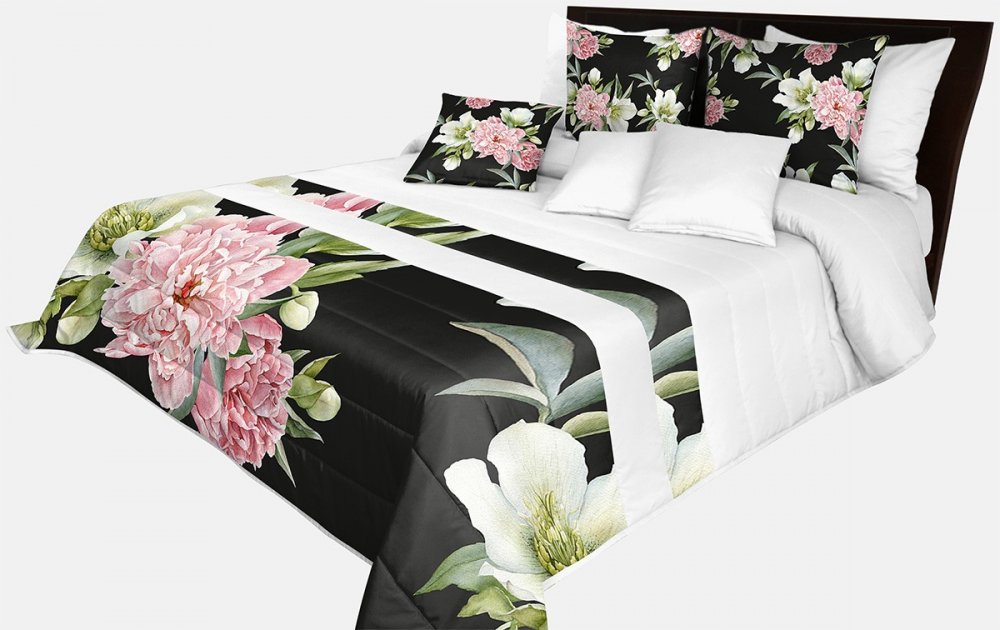 Prešívaný prehoz na posteľ v čierno-bielej farbe s dokonalou potlačou kvetín Šírka: 200 cm | Dĺžka: 220 cm Šírka: 200 cm | Dĺžka: 220 cm