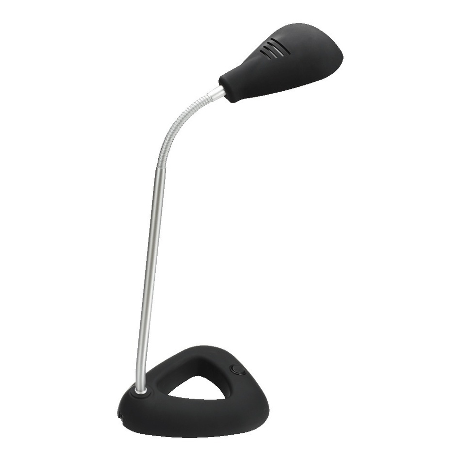 Stolná lampa Flip z kolekcie dizajnového osvetlenia slovenského dodávateľa LUXERA zaujme nápaditou farebnou kombináciou chrómovej a čiernej v každom moderne zariadenom interiéri. Trojuholníková vykrojená základňa s vypínačom a nenápadné tienidlo sú zhotovené z čierneho plastu. Ohybné telo lampy je vyrobené z kvalitného chrómového kovu.Svit zaisťuje integrovaný LED SMD zdroj s celkovým príkonom 1 x 4,68 W so svietivosťou 300 lm a teplotou chromatickosti 3000 K. Dokonale osvieti čítací či pracovný priestor vo vašej obývačke, spálni či pracovni. Hodí sa do moderne a klasicky zariadených interiérov. Vďaka svojmu vzhľadu zapadne aj do detskej izby. Kvôli nižšiemu krytiu IP20 nie je vhodná do miestností s výskytom vyššej vlhkosti vzduchu. Je napájaná zo siete na 220-240 V.