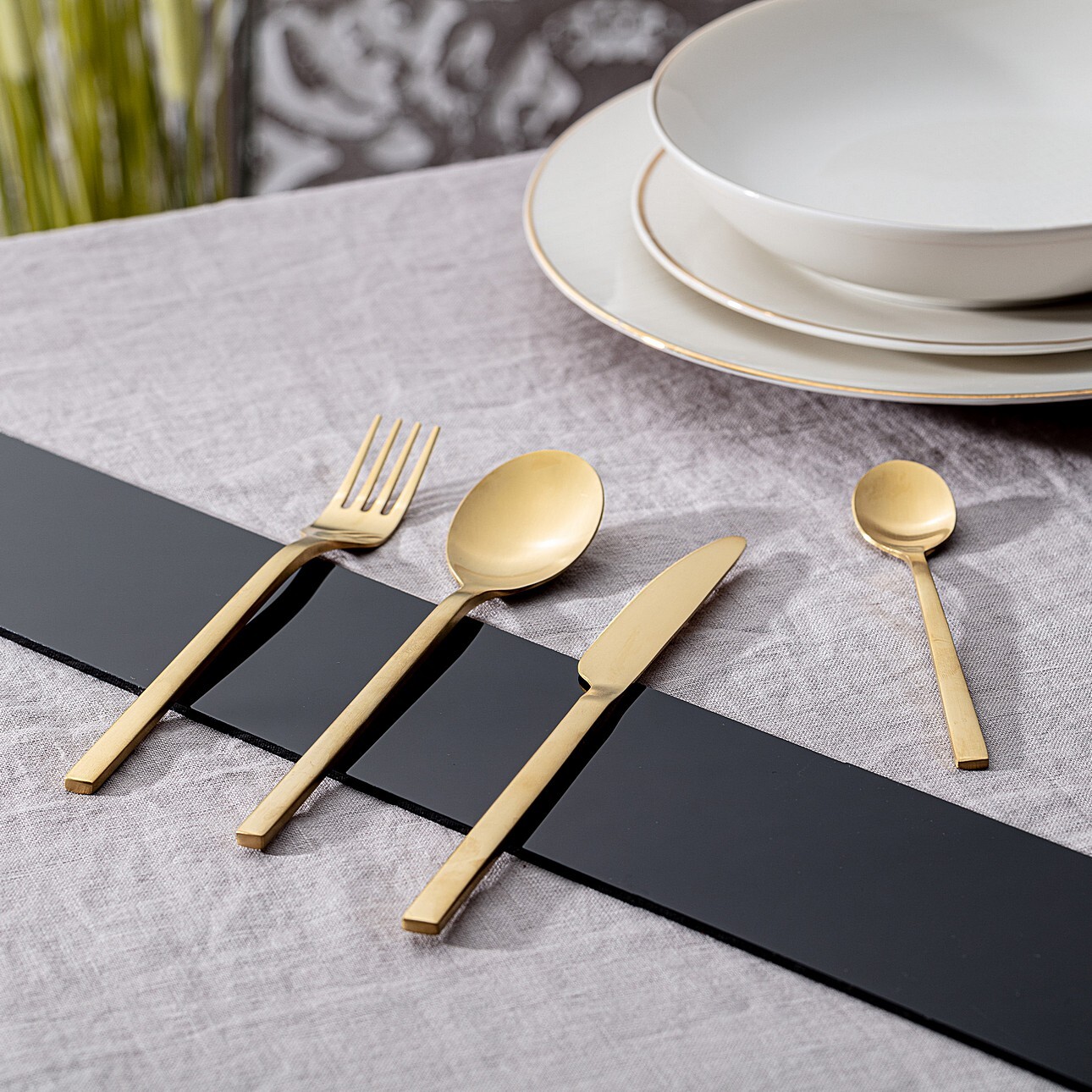 Moderný, jednoduchý dizajn a inovatívne prevedenie – nerezová oceľ v matnej zlatej farbeVhodné aj ako osobný darčekPodrobnosti o dizajne – pozrite si obrázkySúprava obsahuje nôž, vidličku, lyžicu a kávovú lyžičku