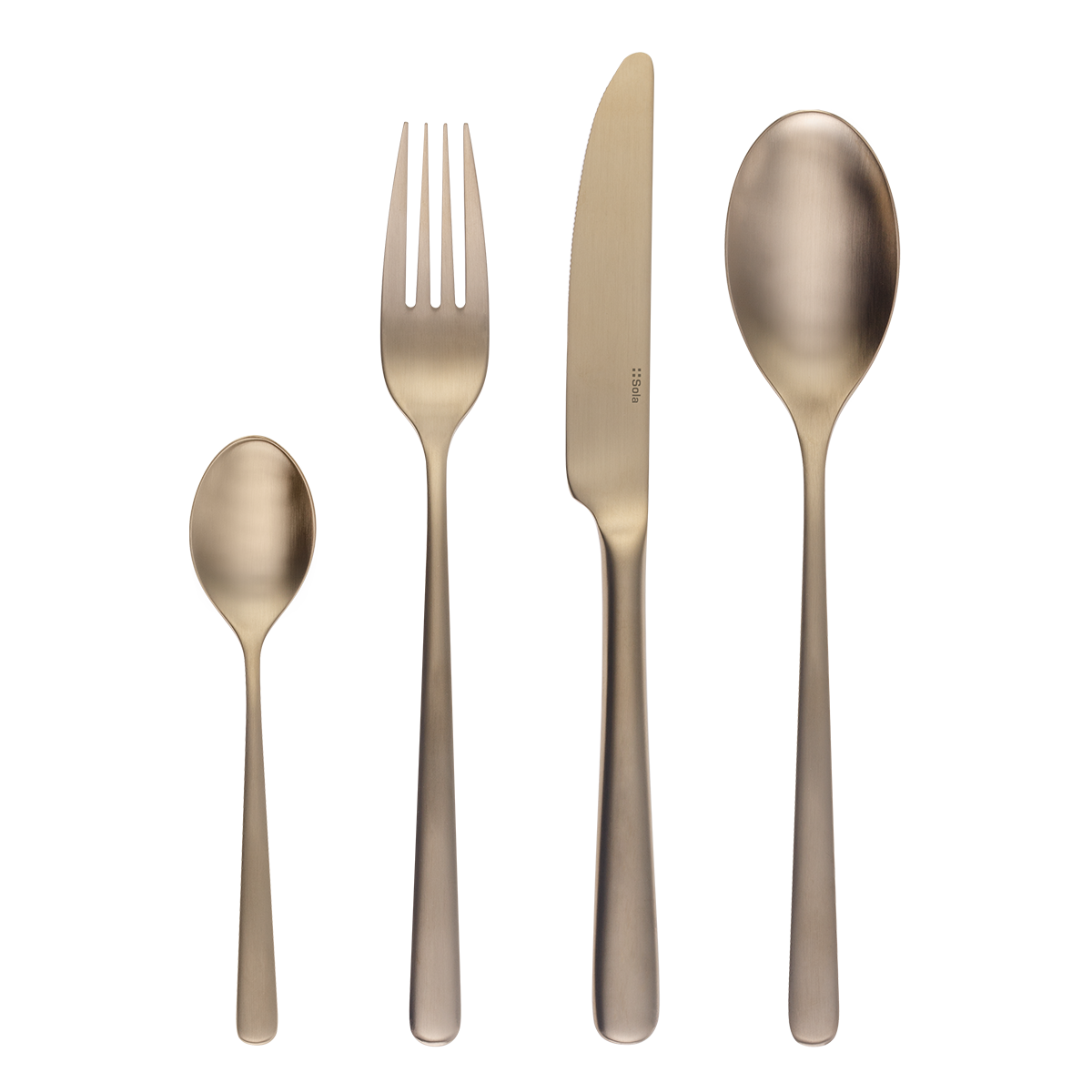 Vykročte z davu! Netradičný odtieň vo farbe šampanského v matnom prevedení oživí váš stôl noblesou a urobí z vás majstra stolovania. Neodmysliteľne patrí ku každej špeciálnej príležitosti a vhodne doplní moderné aj tradičné interiéry. Set obsahuje: 4x polievková lyžica 4x vidlička 4x nôž 4x kávová lyžička