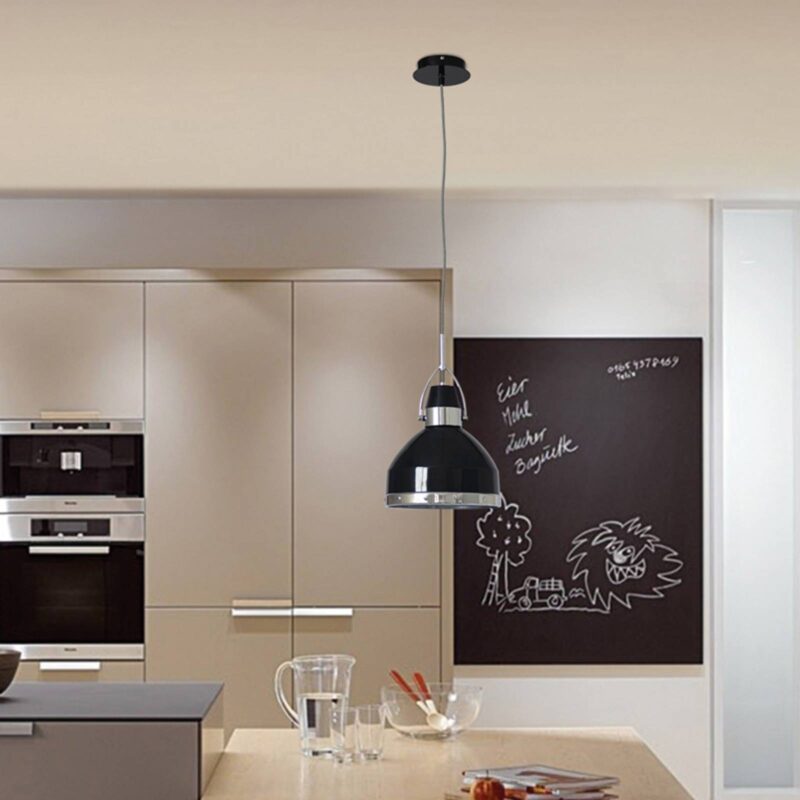 Čierna závesná lampa Britta s otočným tienidlomKombinácia čierneho lakovaného a pochrómovaného kovu a dizajn s tienidlom, ktoré sa otáča v držiaku, robia zo závesnej lampy Britta zdroj svetla, ktorý vnesie do každej miestnosti trochu industriálneho šiku. Možno ju použiť na osvetlenie stola alebo pultu a možno ju osadiť všetkými typmi žiaroviek s päticou E27.