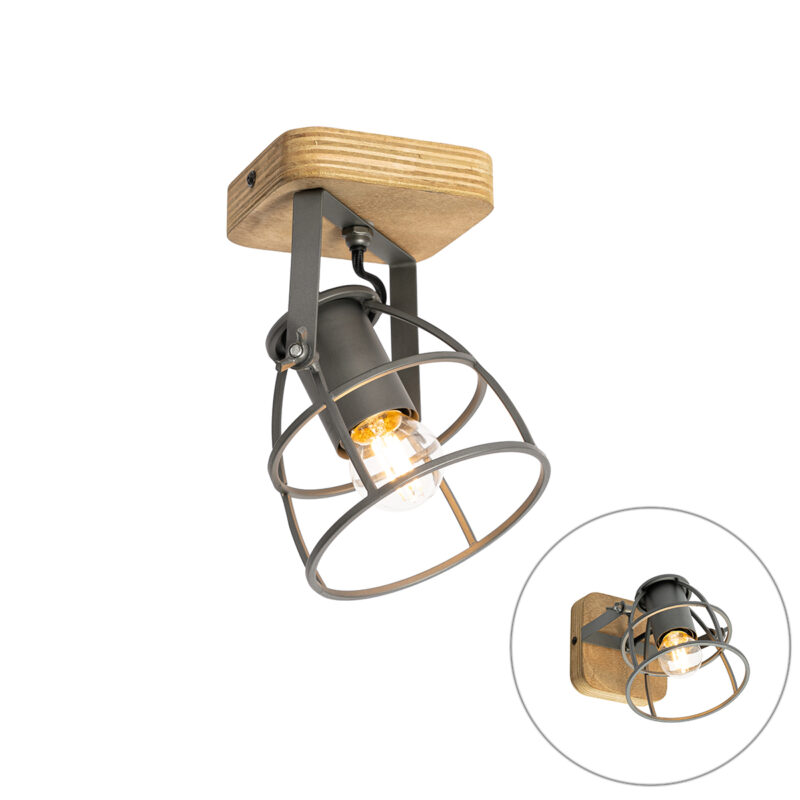 Priemyselný reflektor tmavosivý s dreveným nastaviteľným – Arthur