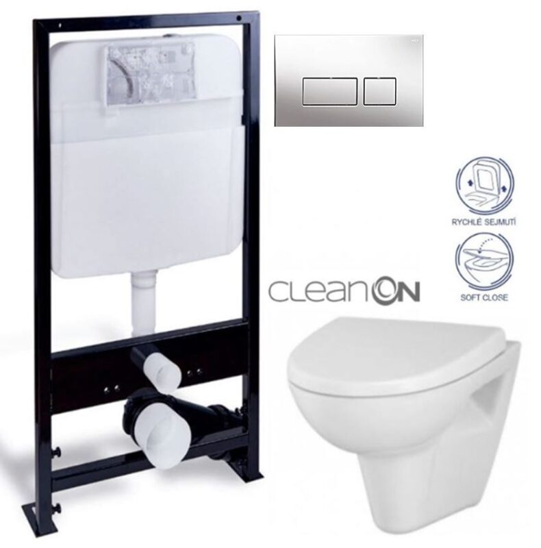 PRIM předstěnový instalační systém s chromovým tlačítkem 20/0041 + WC CERSANIT CLEANON PARVA + SEDADLO PRIM_20/0026 41 PA1