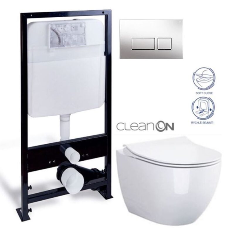 PRIM předstěnový instalační systém s chromovým tlačítkem 20/0041 + WC CERSANIT ZEN CLEANON + SEDADLO PRIM_20/0026 41 HA1