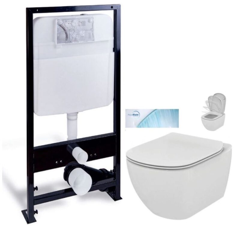 PRIM predstenový inštalačný systém bez tlačidla + WC Ideal Standard Tesi so sedadlom SoftClose, AquaBlade PRIM_20/0026 X TE1