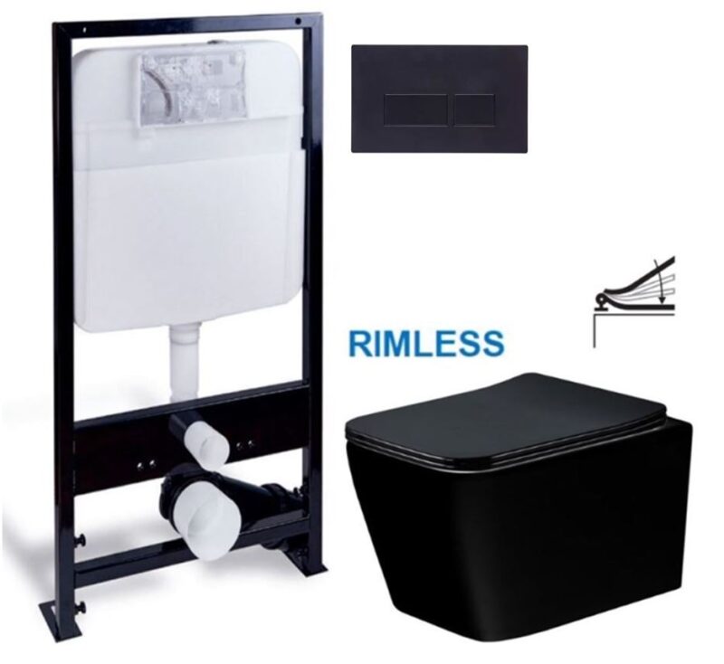 Podomietkový systém pre WC misu, mechanický bez tlačidla (PRIM_20/0026) Určené na suchú inštaláciu. . 3/6 litrová podomietková nádrž . hrubá hmotnosť: 13,15 kg . čistá hmotnosť: 11,50 kg . jednoduchá montáž . úspora vody . tichý chod . hygienický . 5-ročná záruka Podomietkový modul je zariadenie, ktoré sa používa na inštaláciu sanitárnych zariadení, najmä ako splacovacie zariadenie WC misám . Podomietkový modul sa umiestňuje do steny, pričom tvorí skrytú časť inštalácie. Jeho úlohou je zaistiť prívod vody na splachovanie a riadiť mechanizmus na ovládanie splachovania. WC tlačidlo pre nádržku PRIM čierne mat (PRIM_20/0044) plastové čierny mat Ovládacie tlačidlo k podomietkovému WC modulu sa nachádza na stene nad WC misou a slúži na ovládanie splachovania vody. Teo závesná WC misa vrátane sedátka s slow-slim, duroplast, čierna lesk (30854070) šírka: 36 cm hĺbka: 53 cm výška: 37 cm farba: čierna WC závesná misa TEO Rimless /bez oplachového kruhu/. WC misa je elegantného vzhľadu so zadným odpadom. Vďaka bez oplachovému kruhu Rimless sa nehromadia v golieri nečistoty a baktérie, ako je to pri bežných WC. Duroplastové WC sedátko SLIM / tenká verzia / so systémom pomalého sklápania a jednoduchým sňatím a upevnením sedátka. Obdĺžniková toaleta Mexen Teo je tou najlepšou možnou voľbou pre ľudí, ktorí snívajú o modernej kúpeľni s dizajnom inšpirovaným geometrickými tvarmi. Čierna farba keramiky bude dokonale ladiť s akoukoľvek inou farbou – kúpeľňu si tak zariadite presne podľa svojich predstáv. Komfort je charakteristickým znakom tohto produktu – je veľmi ovplyvnený pomalým zatváraním Slim sedátka z duroplastu.(GT) Ean: 8596462579878