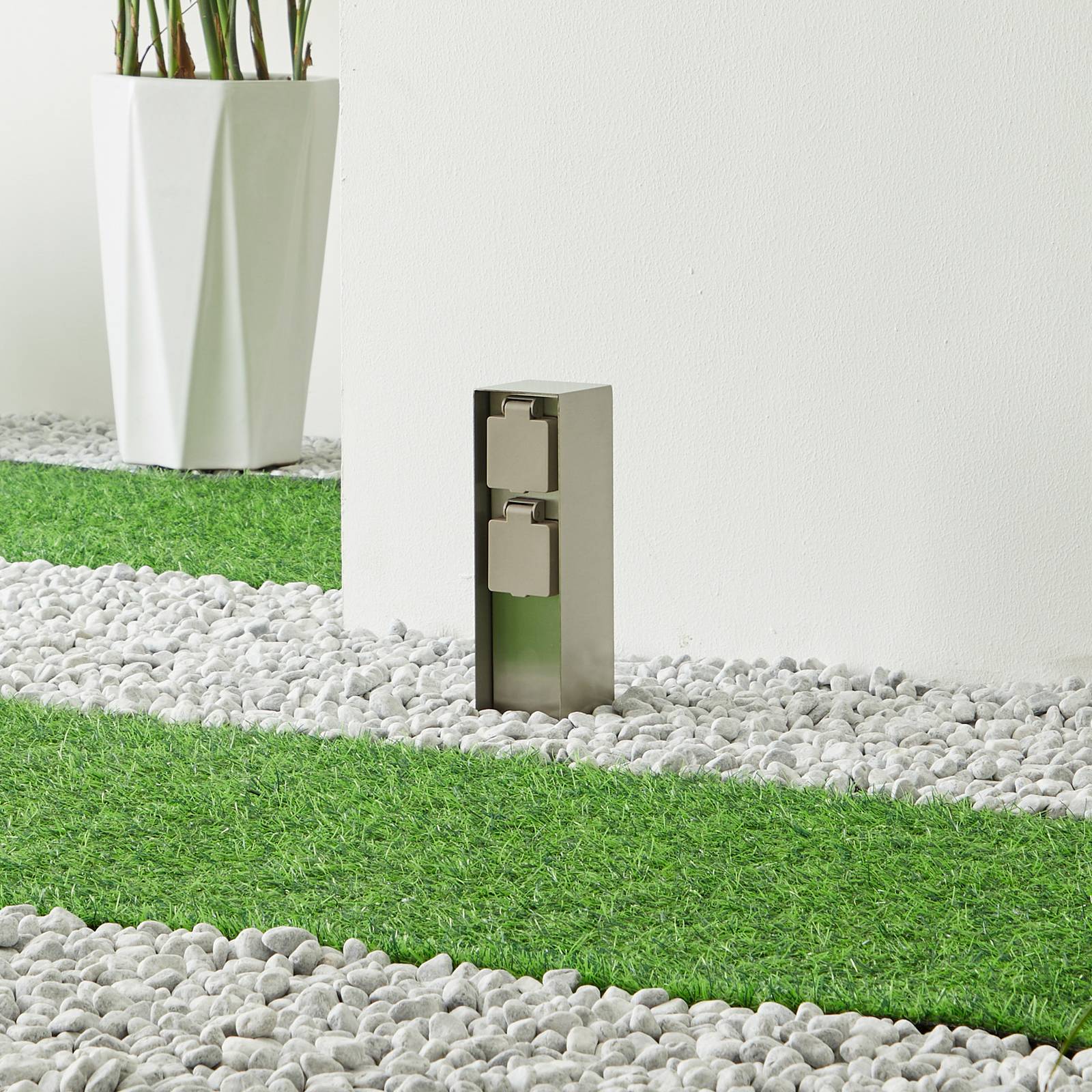 Hranatá nerezová energetická stĺpiková zásuvka Foranda s 2 zásuvkami Hranatý dizajn a povrch z nehrdzavejúcej ocele robia zo zásuvkovej stĺpikovej zásuvky Foranda vhodný doplnok do moderných priestorov. Obidve zásuvky sú vybavené krytmi, aby zariadenie nebolo vystavené vplyvom počasia a bolo dostatočne chránené. Energetická stĺpik je praktickým doplnkom do exteriéru v lete aj v zime a je vhodný na pripojenie elektrických pracovných nástrojov alebo sezónneho vonkajšieho osvetlenia, ktoré sa napája pomocou zástrčky. – 2 x CEE 7/3 (max. 16 A/max. 3600 W)