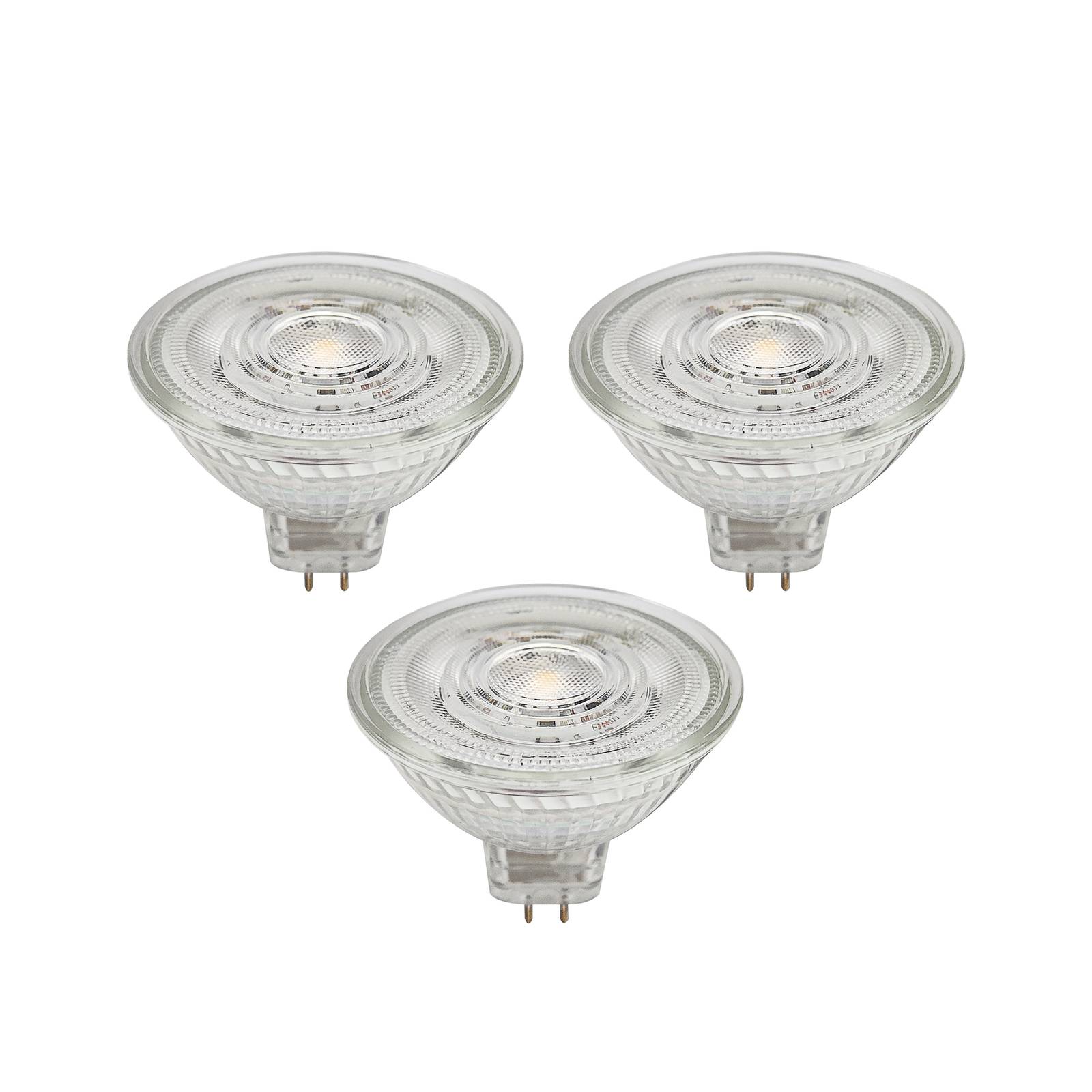 LED reflektor GU5.3 zo skla, priehľadný, v praktickej súprave 3 ks Tento LED reflektor je vhodný pre mnohé svietidlá s päticou GU5.3. Je vyrobený zo skla a vďaka priehľadnému farebnému vyhotoveniu sa dá flexibilne používať – nestmievateľný – 4,3 W – 345 lúmenov – uhol vyžarovania 36° – dodáva sa v sade 3 kusov