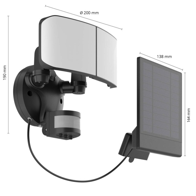 Solárny LED nástenný reflektor Omino s integrovaným senzorom LED nástenné bodové svetlo Omino boduje LED a solárnou technológiou a dobrou svietivosťou. Bodové svetlo bolo držané hlavne v klasickej čiernej farbe, pričom biely kryt obrazovky pôsobil ako difúzor a znižoval oslnenie. Ovládanie ohrievača sa vykonáva pomocou dodávaného solárneho panelu, ktorý sa ukazuje ako energeticky úsporný a chráni životné prostredie. Napevno nainštalovaný modul LED vyžaruje teplé biele svetlo, ktoré je príjemné pre oči. Lampa má integrovaný senzor súmraku a detektor pohybu, ktorý detekuje pohyby v maximálnej vzdialenosti 12 metrov a v uhle 110 °. Trvanie svetla je možné podľa želania nastaviť na 10 až 60 sekúnd. – Stupeň krytia IP44 – teplé biele svetlo (3 000 K) – solárny pohon – Detekčný uhol 110 ° – pokrytie max. 12 metrov – Svietivosť nastaviteľná od 10 do 60 sekúnd