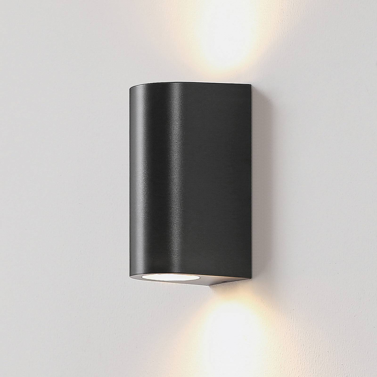 Zaoblené vonkajšie nástenné svietidlo Irfan – jednoduchý spoločník do vonkajšieho priestoru Irfan sa prezentuje pomerne jednoduchým dizajnom. Jeho telo je zaoblené a má objímku pre žiarovku GU10 na hornej aj dolnej strane. Cez otvory v hornej časti a príjemne rozptyľuje vytvorené svetlo na stene. Vonkajšie nástenné svietidlo Irfan má stupeň krytia IP44, a preto je preukázateľne chránené proti striekajúcej vode. Kombinujte ho s ďalšími svietidlami z tejto série a vytvorte harmonickú atmosféru.