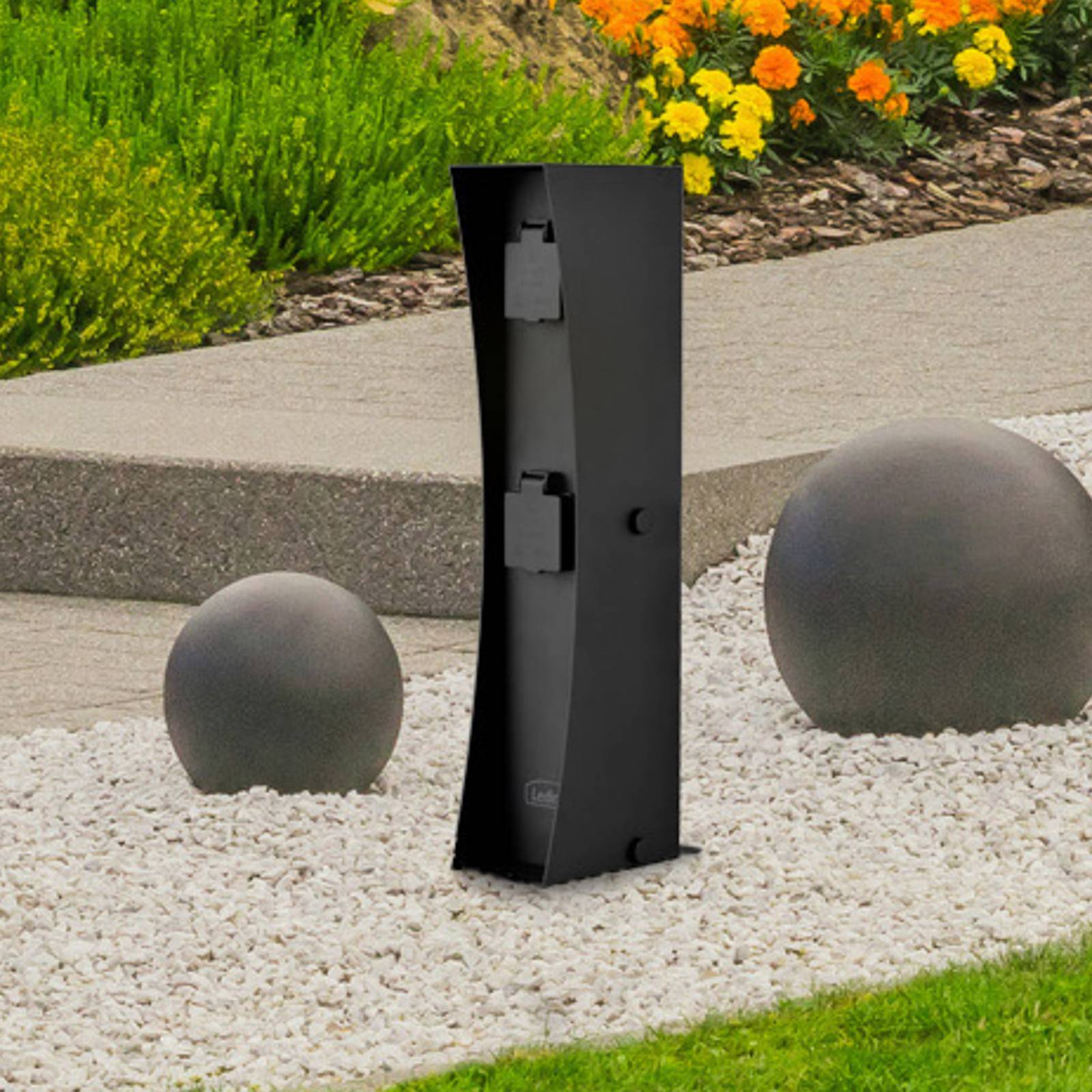 Zásuvkový stĺp Connect na vonkajšie použitie Tento zásuvkový stĺp Connect ponúka možnosti pripojenia elektrického záhradného náradia a ďalších zariadení – od nožničiek na živý plot a kosačiek na trávu až po svetelné zdroje na večerné osvetlenie atmosféry. Zásuvkový stĺp z nehrdzavejúcej ocele možno zaťažiť celkovým výkonom až 3 500 W. Zásuvky sa uzatvárajú sklopným krytom – Vrátane dvoch zásuviek