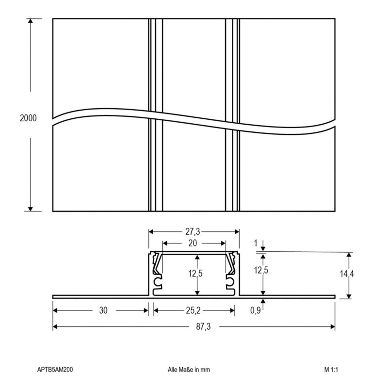 200 cm dlhý hliníkový profil na sadrokartón s opálovým krytom Tento profil pre sadrokartónové dosky z eloxovaného hliníka je vhodný pre LED pásy so šírkou do 2 cm a maximálnym výkonom 20 W na m. Opálový polykarbonátový kryt má koeficient priepustnosti 65 %. Opálový polykarbonátový kryt má koeficient priepustnosti 65 %. Profil je určený na montáž do sadrokartónu s hrúbkou 12,5 mm.