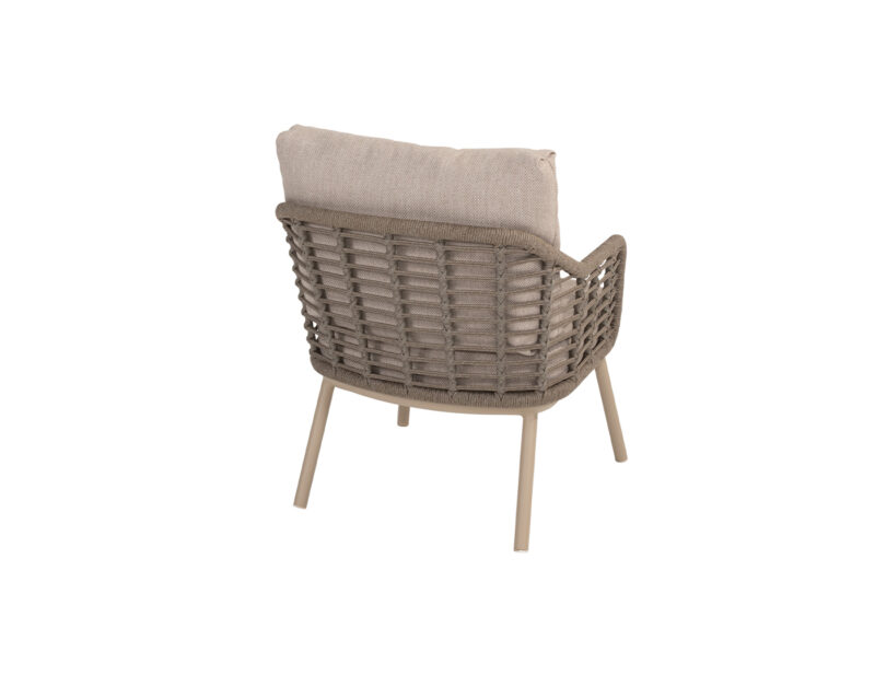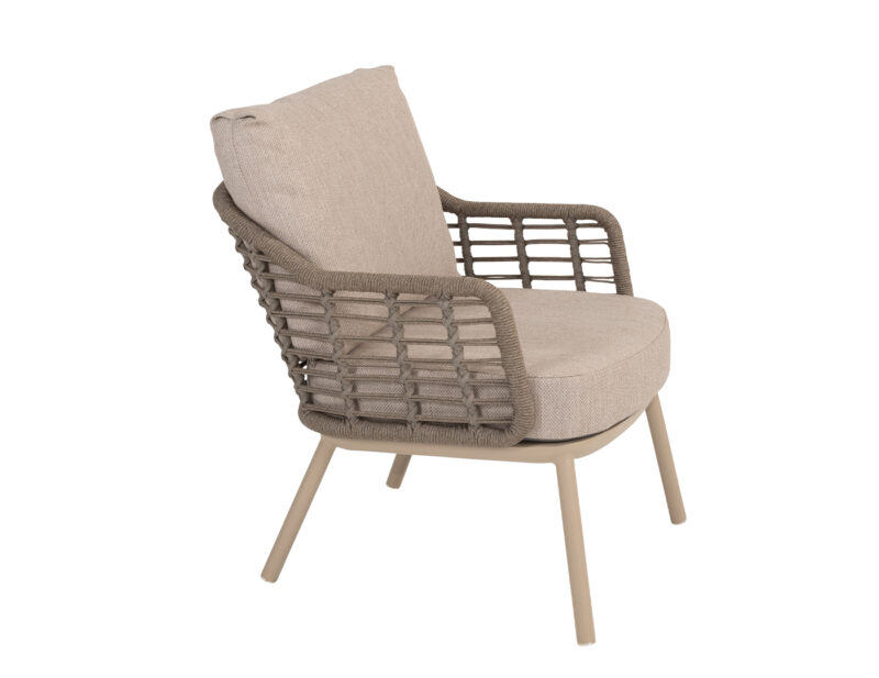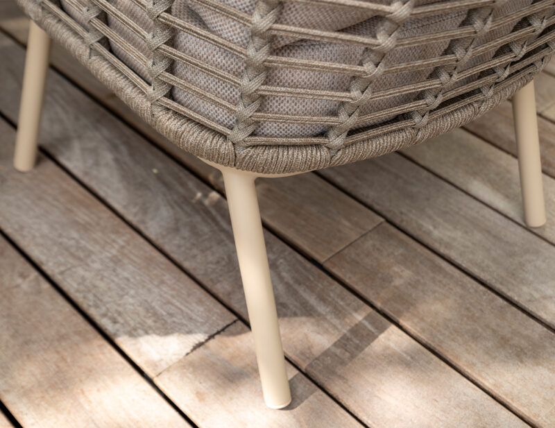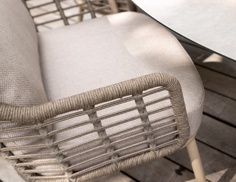 Puglia Low jedálenská stolička kombinuje pohodlie kresla a funkčnosť jedálenskej stoličky, čím vytvára ideálny kúsok pre dlhé stolovanie v exteriéri.