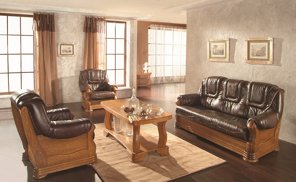 PYKA Aneta II kožená sedacia súprava drevo D3 / tmavohnedá (DTS53)
