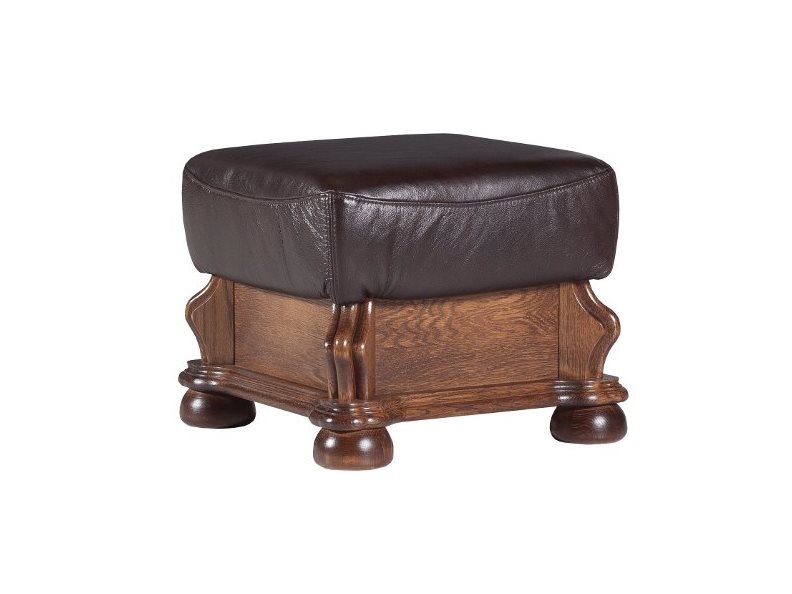 PYKA Cezar kožená taburetka drevo D3 / tmavohnedá (DTS53)