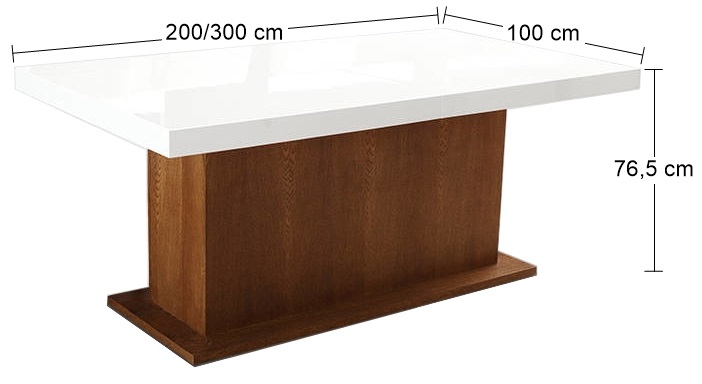 PYKA Kacper 200/300 rozkladací jedálenský stôl drevo D3 / biely vysoký lesk