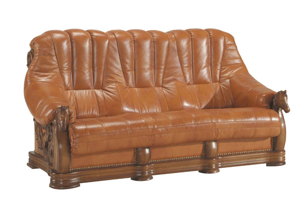 PYKA Oskar kožená trojsedačka drevo D3 / svetlohnedá (DTS50)