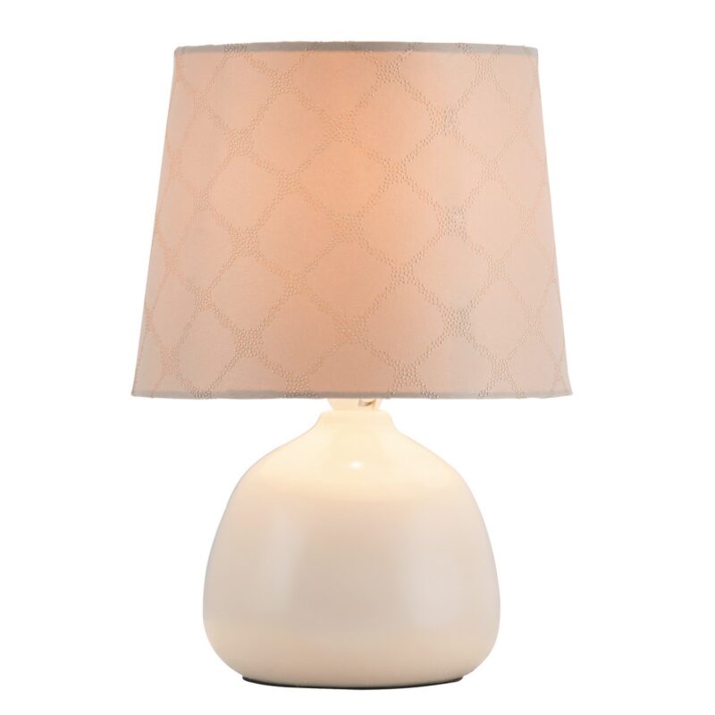 Stolná lampa Ellie oživí váš interiér a súčasne poskytne dostatok svetla. Poslúži nielen ako dekorácia, ale aj ako praktický pomocník pri čítaní obľúbenej knihy. Použitý materiál keramika a textil sú zárukou dlhej životnosti a vysokej odolnosti.Pri vyberaní svetelného zdroja stačí poznať typ pätice E14. Svetelné zdroje pre toto svietidlo možno vyberať až do hodnoty maximálneho príkonu 40 W, na ktorej je svietidlo skonštruované. Hodnota krytia IP20 označuje vhodnosť použitia iba do vnútorných a suchých priestorov. Súčasťou lampy je káblový spínač.