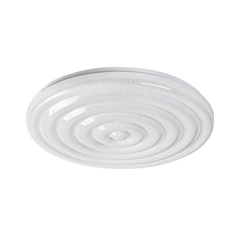 Okrúhle stropné svietidlo Katina s trblietavým efektom odporúčame tým, ktorí hľadajú model striedmy, ale zároveň poskytujúci extra funkcie do modernej obývacej izby či spálne. Vďaka bielej farbe svietidla takmer splynie s typickým svetlým odtieňom stropu.Katina, vyrobená z kovu, je doplnená plastovým tienidlom a má zabudovaný LED svetelný zdroj energetickej triedy F, ktorý má výkon 36 W, svietivosť 3070 lúmenov s tienidlom, 3600 lúmenov bez tienidla a skutočne fantastická životnosť: 50 000 hodín!Farebnú teplotu lampy je možné nastaviť v rozmedzí 3000-6500 K, tzn. môže svietiť teplým, prirodzeným alebo studeným bielym svetlom. Medzi ďalšie doplnky patrí nastaviteľný jas, pamäť, časovač a nočné funkcie. Farebnú teplotu a funkciu pamäte je možné nastaviť pomocou spínača alebo diaľkového ovládača, zatiaľ čo jas a funkciu časovača je možné nastaviť pomocou diaľkového ovládača.Priemer stropného svietidla je 475 mm a vzdialenosť od stropu 70 mm.