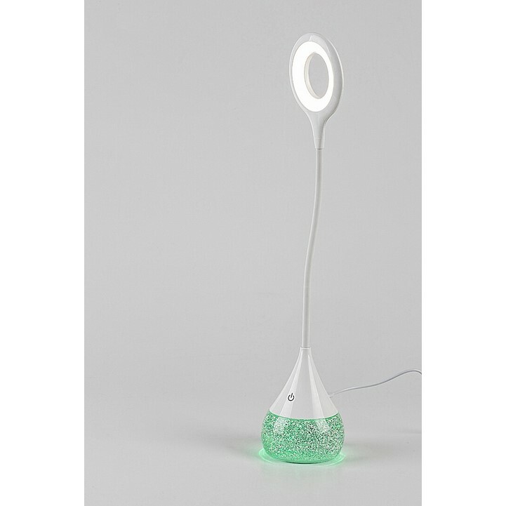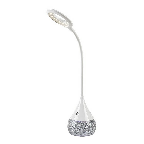 Stolná lampa Rabalux Vivter je ideálnou voľbou pre tých, ktorí hľadajú doplnkovú lampu s rozsiahlou funkčnosťou. Tento šikovný model je celý vyrobený z plastu v bielej farbe. Rameno lampy je tenké, valcovitého tvaru, zakončené flexibilnou hlavicou v tvare donutu. Konštrukcia sa smerom dole rozširuje a okrúhla časť, ktorá slúži ako základňa, obsahuje pohyblivý sľudový materiál – túto časť je možné zapínať samostatne.Lampa umožňuje RGB osvetlenie, vďaka čomu môže sľudová výplň svietiť v širokej škále farieb. Dizajnová lampa má vstavaný LED svetelný zdroj vyžarujúci prirodzené biele svetlo. Intenzitu osvetlenia je možné nastaviť pomocou dotykového spínača v spodnej časti lampy. Stolná lampa je ideálnou voľbou do obývacej izby, spálne alebo pracovne.